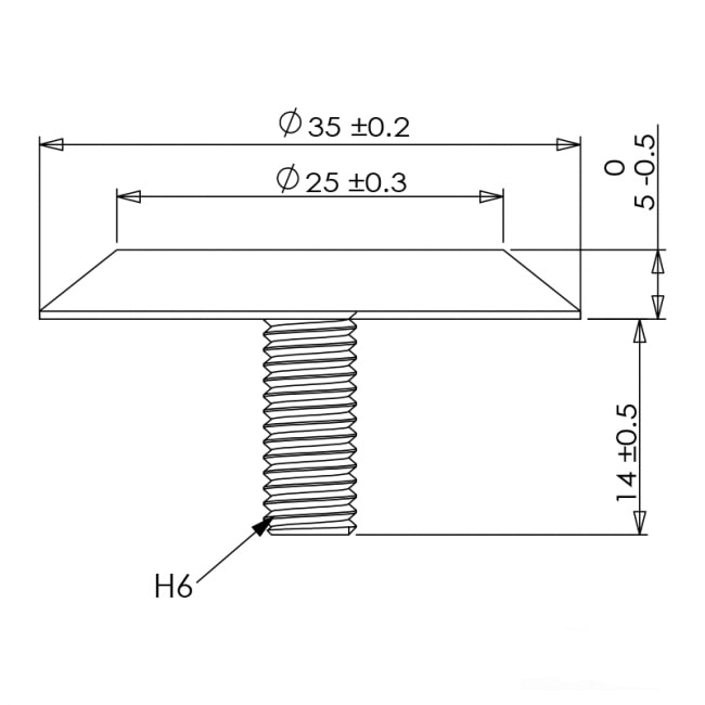 - Les dimensions sont de 25 mm de diamètre pour la partie supérieure et 35 mm de diamètre pour toute la surface de la tête du clou, elles sont conformes à la norme NF P98-351.