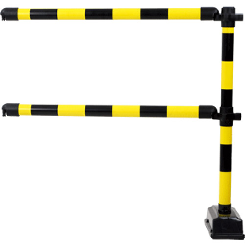 Se transportent facilement et sont complètement modulables. Disponibles en 4 couleurs (jaune/noir, blanc/rouge, blanc et gris). La hauteur du poteau au sol est de 94 cm.