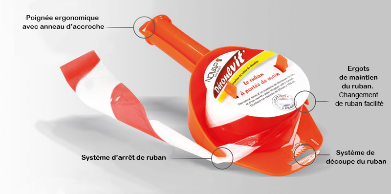 Dérouleur de ruban de chantier avec rouleaux de ruban inclus.