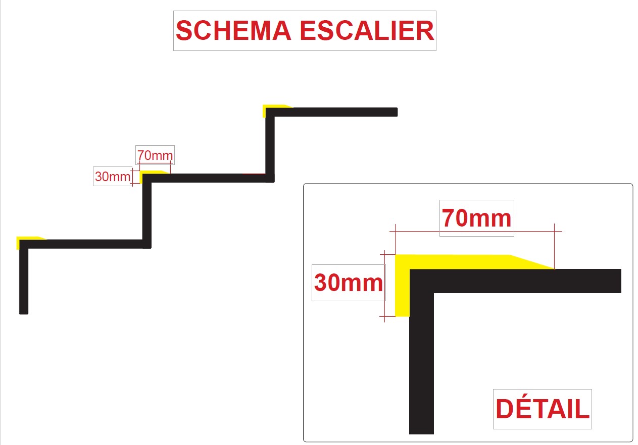 • Dimensions: contremarche lisse de 30 mm, marche rugueuse de 70 mm, largeur sur mesure.